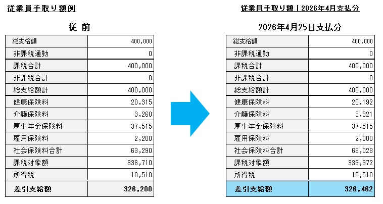 従業員の手取り額への影響|2026年3月分(4月支払い給与)