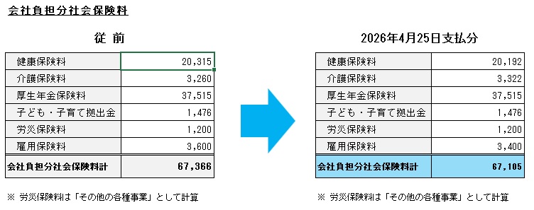 会社負担分の社会保険料への影響|2026年4月支払い給与